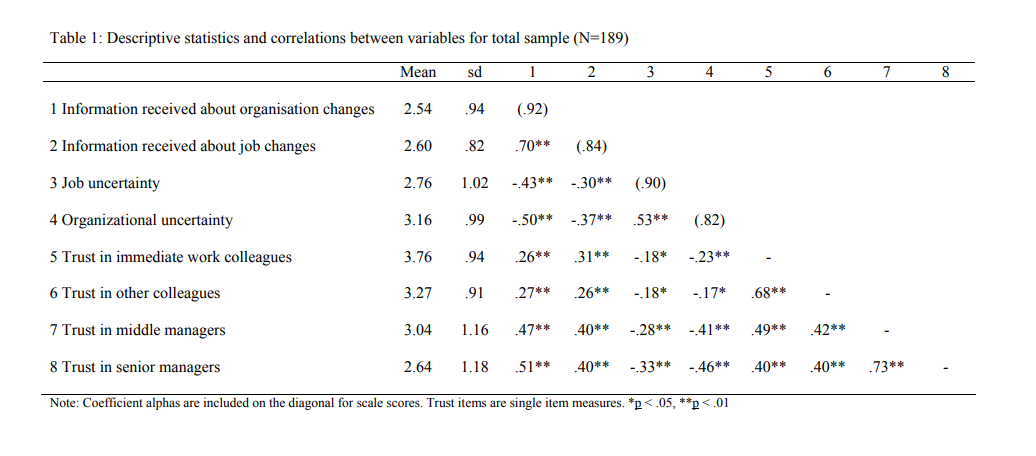 Source: “Organizational Downsizing, Work Conditions, and Employee Outcomes: Identifying Targets for Workplace Intervention among Survivors”